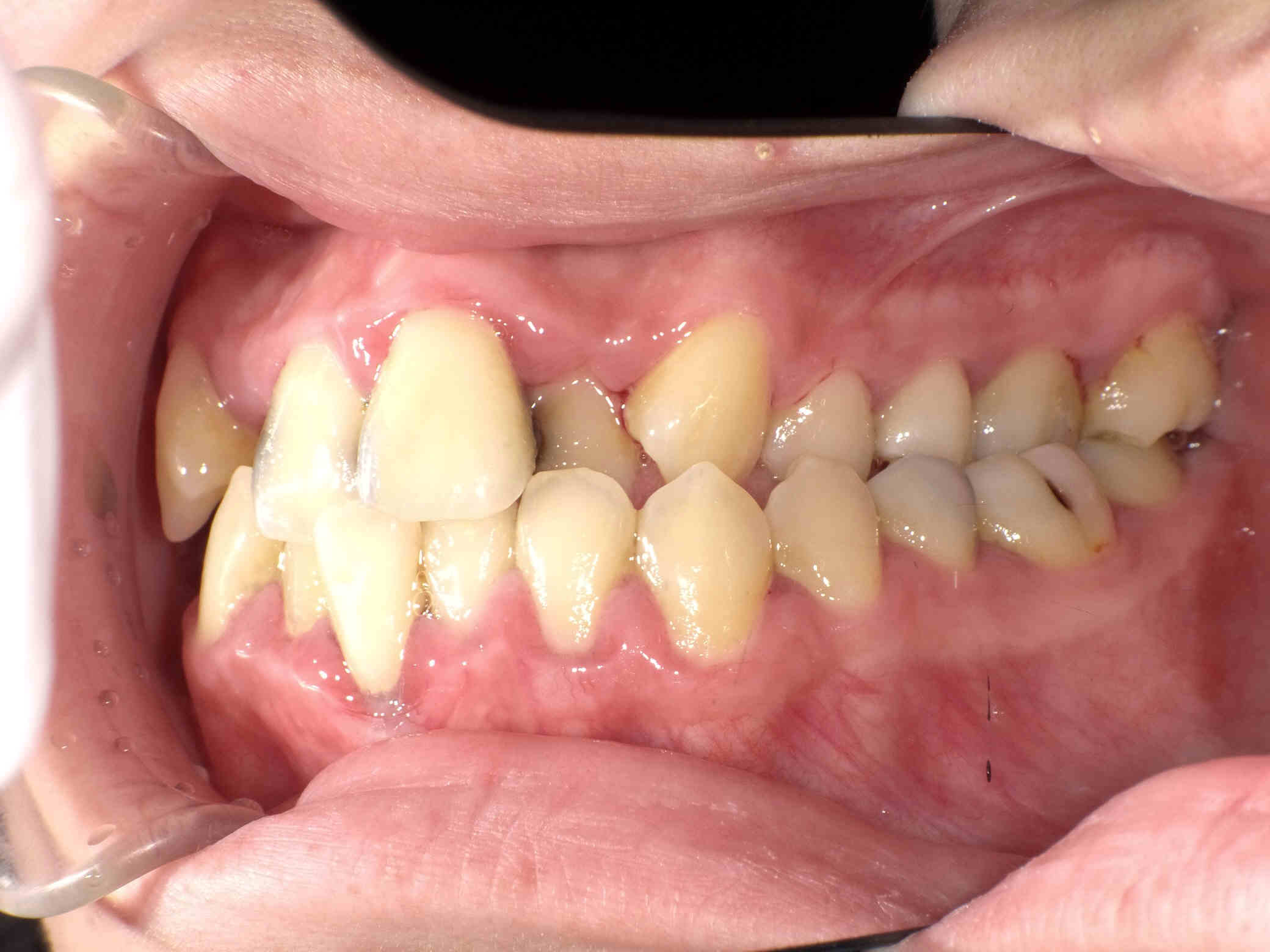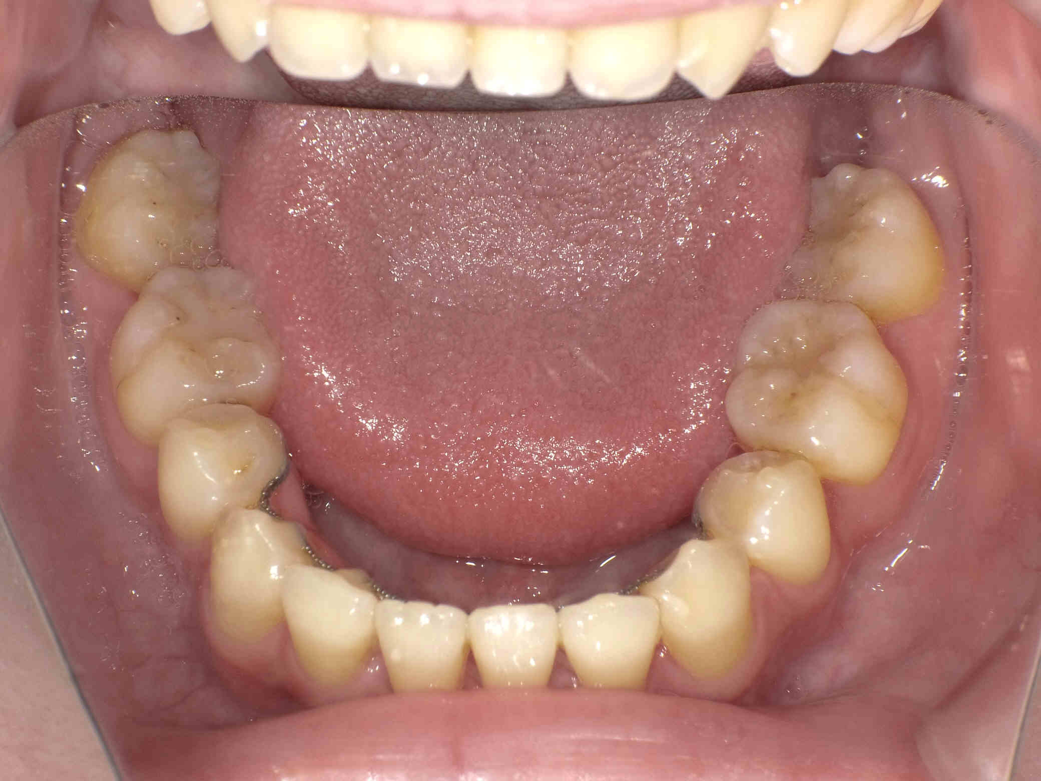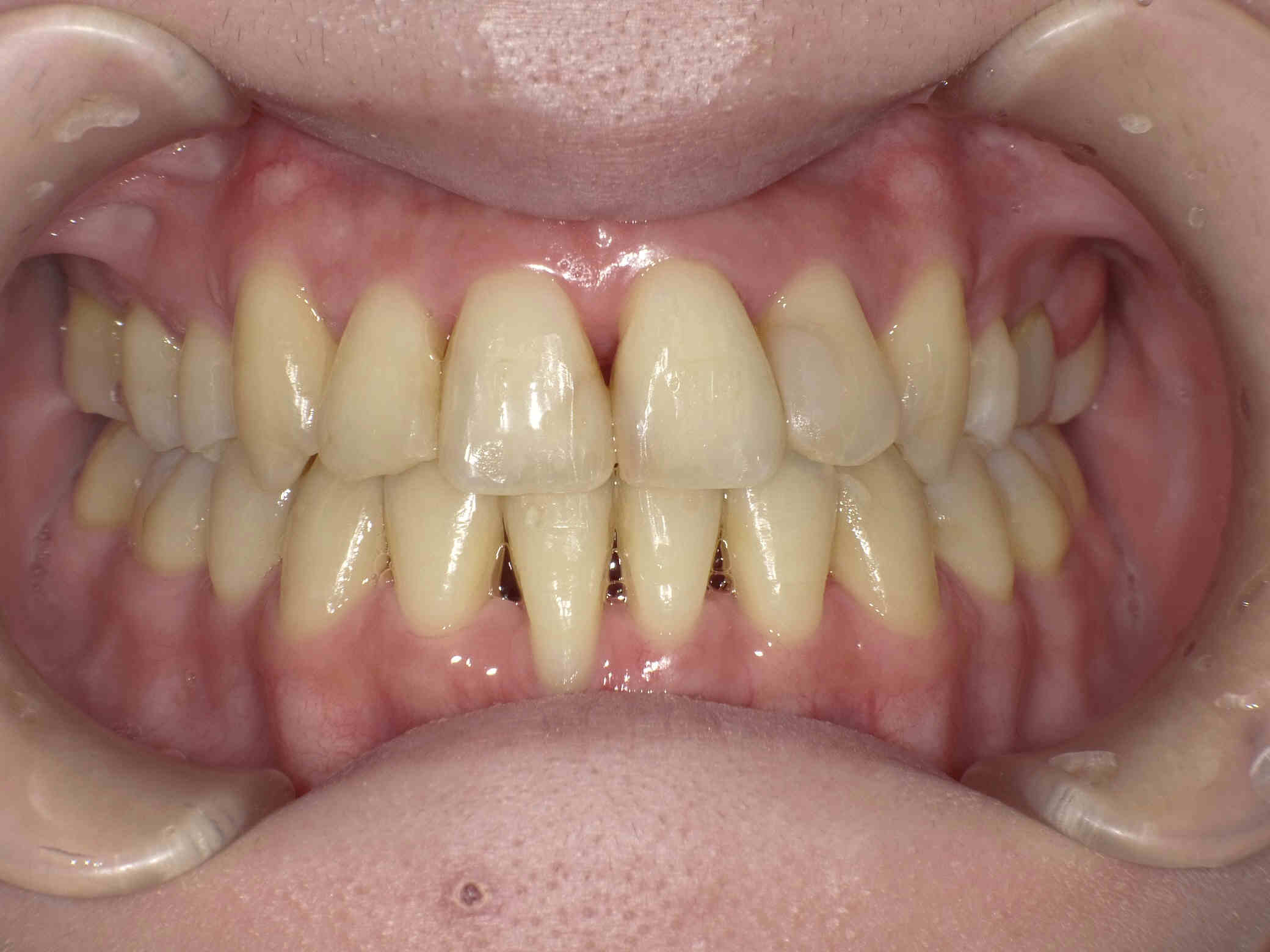 歯槽骨(歯を支えている骨)が狭く、デコボコや交叉咬合(部分的に下の歯が前に出ている)がありました。