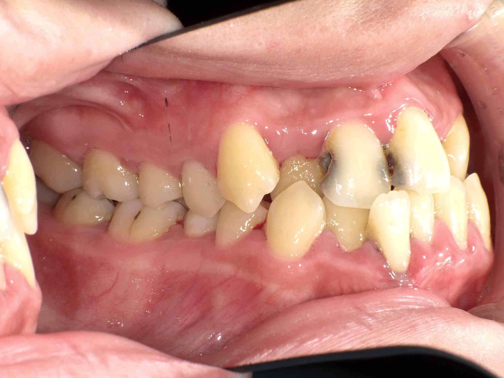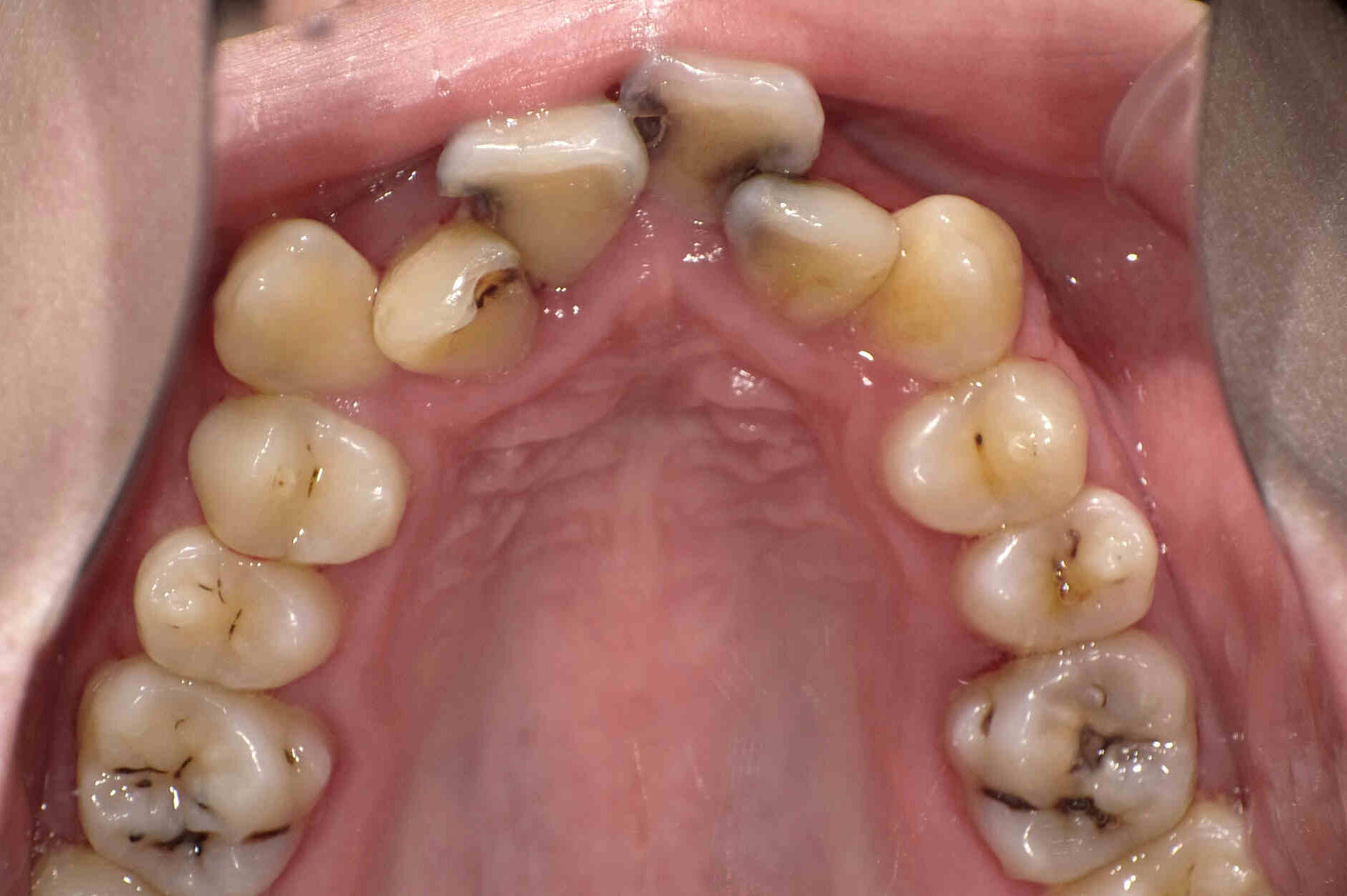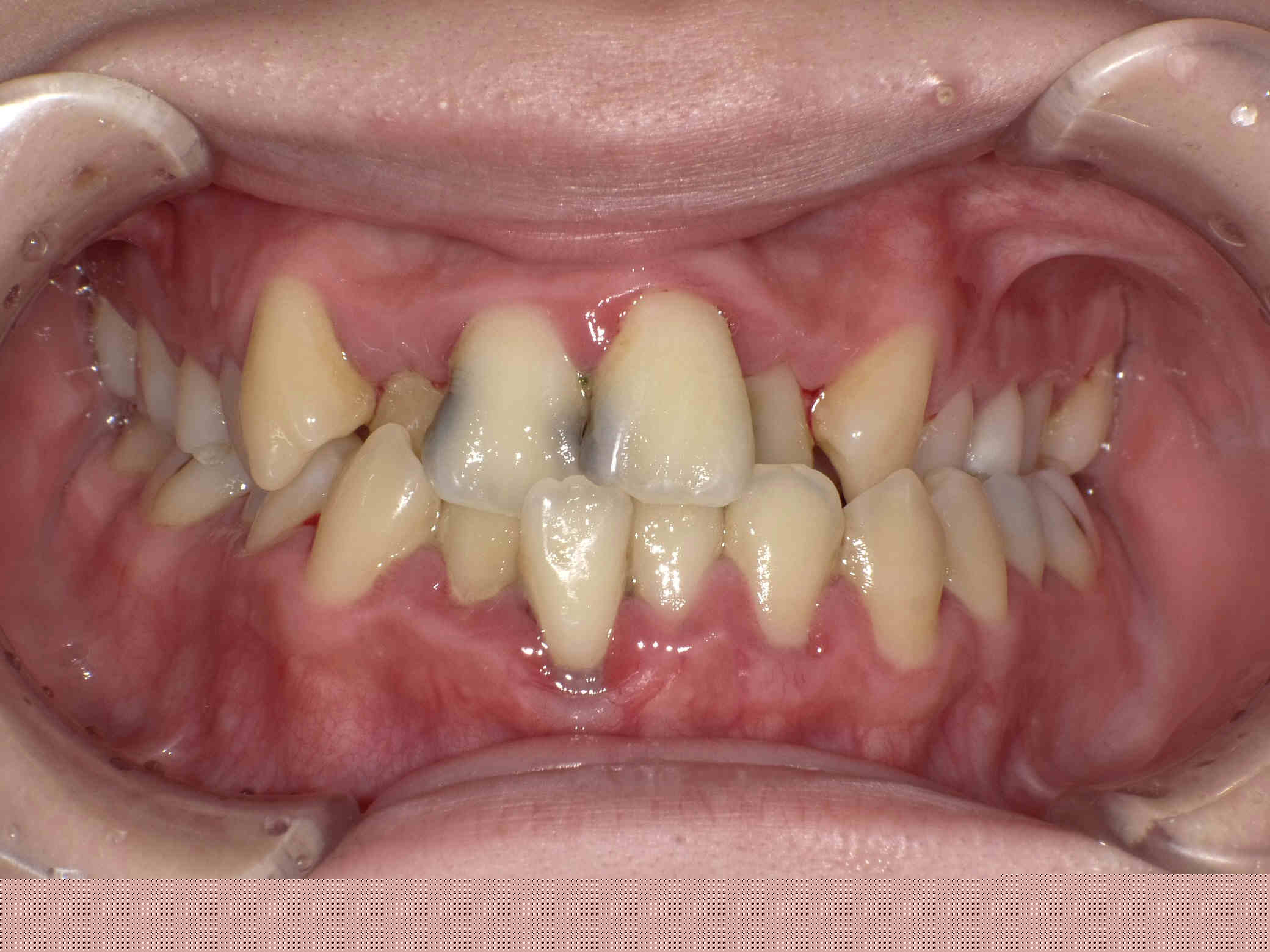 歯槽骨(歯を支えている骨)が狭く、デコボコや交叉咬合(部分的に下の歯が前に出ている)がありました。