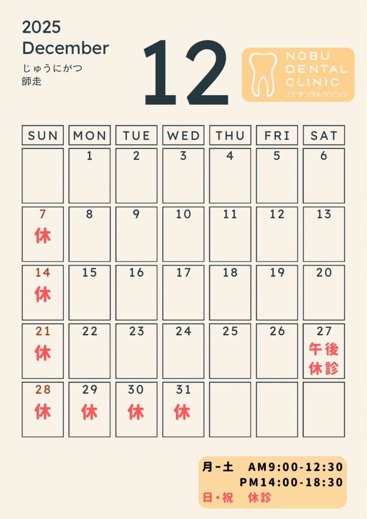 2025年12月の診療日カレンダー&年末年始の営業案内
